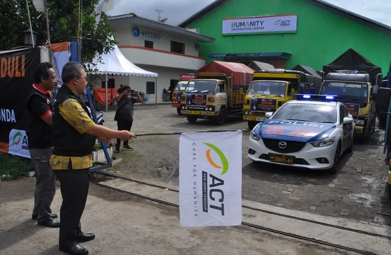 20 truk bantuan tersebut diberangkatkan dari gudang Humanity Distribution Center (HDC) di Gunung Sindur, Kabupaten Bogor. Manajer Umum Komunikasi ACT Lukman Aziz mengatakan, bantuan pangan dan logistik dikirimkan menuju dua kabupaten yang terkena dampak tsunami terparah, yakni Pandeglang dan Lampung Selatan.