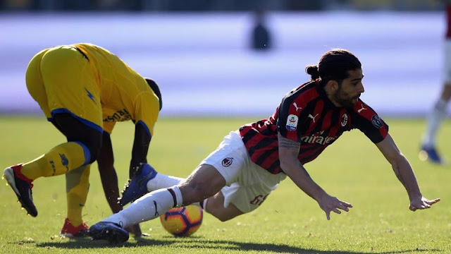 Milan ditahan 0-0 saat bertandang ke Stadion Benite Stirpe, Rabu (26/12/2018). Meski tampil mendominasi, Milan kesulitan menaklukkan lawan yang kini menempati posisi ke-19 di klasemen sementara.
